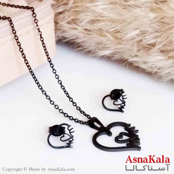 نیم ست زنانه استیل، جنس آن از استیل رنگ ثابت که تشکیل شده از یک عدد آویز و یک جفت گوشواره و زنجیر استیل در بسته بندی هدیه از فروشگاه اینترنتی آسناکالا خریداری شود.
