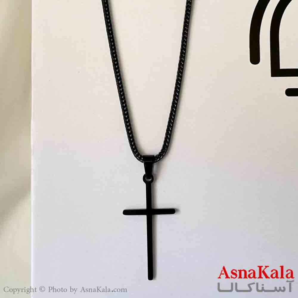 گردنبند استیل مدل صلیب استیل رنگ مشکی کد GNB161847W