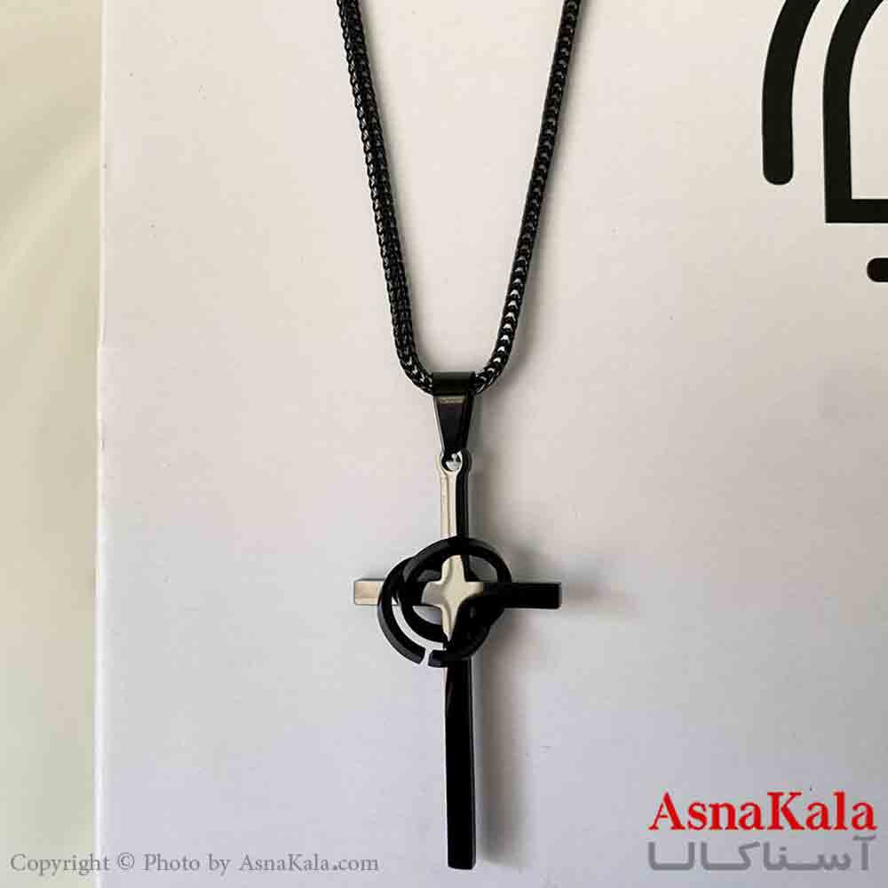 گردنبند صلیب و حلقه استیل رنگ مشکی کد GNB161850W