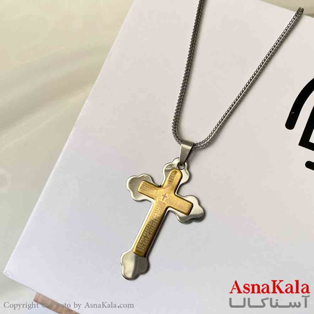 گردنبند اسپورت مدل صلیب سه بعدی استیل رنگ طلایی کد GNB161865W