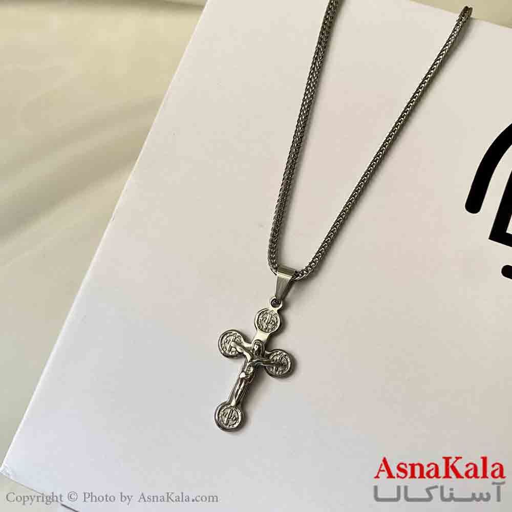 گردنبند اسپورت مدل صلیب ترند استیل رنگ نقره ای کد GNB161879W