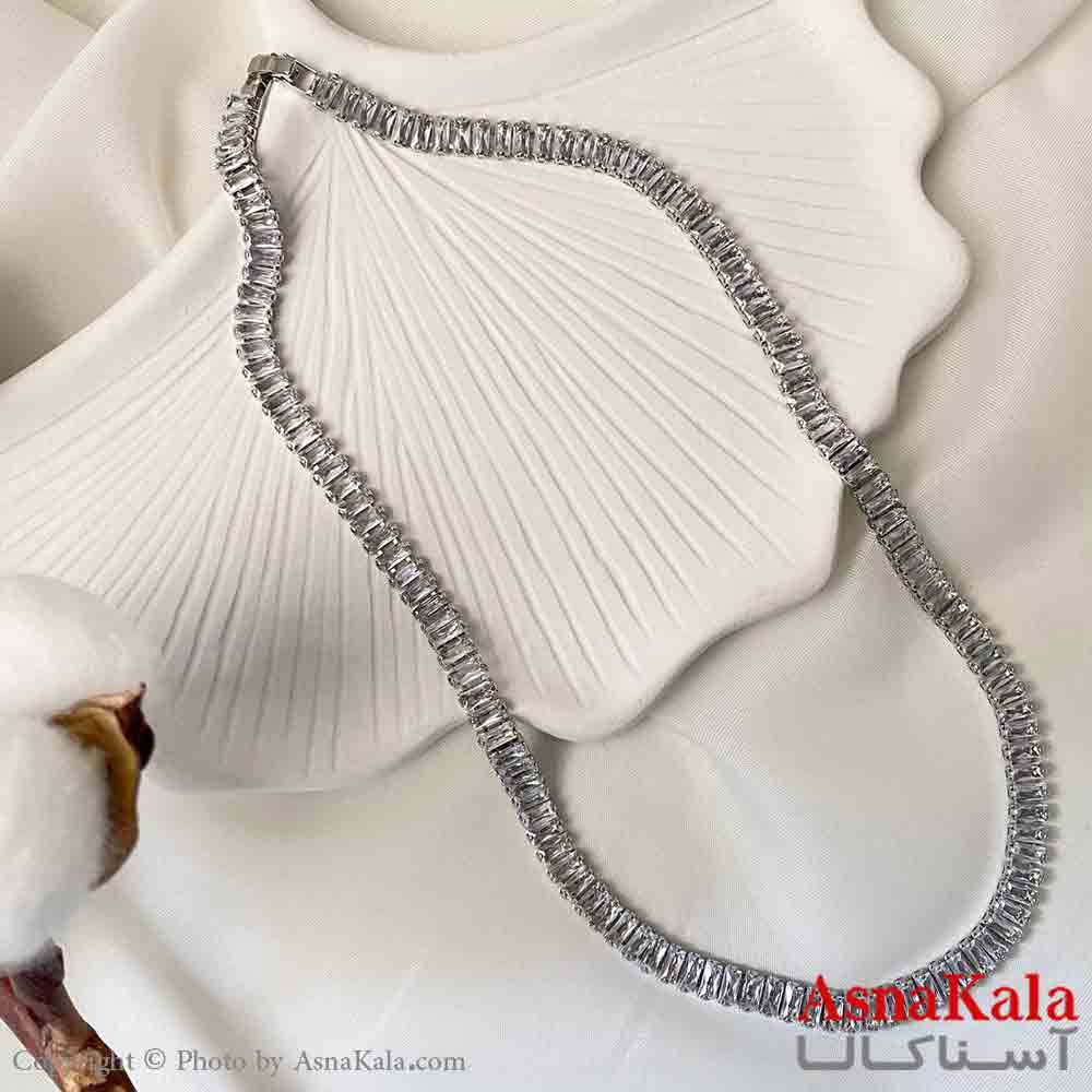 گردنبند اسپورت مدل تنیسی نگین باگت استیل رنگ نقره ای کد GNB161894W