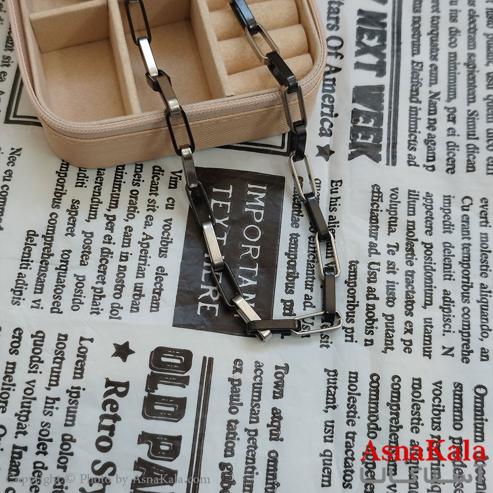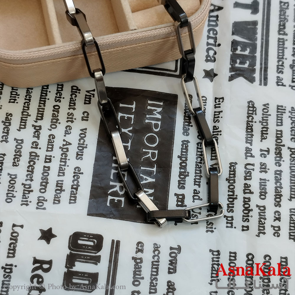 زنجیر آجری بزرگ نقره ای مشکی استیل 50 سانتی متر کد GNB162242W