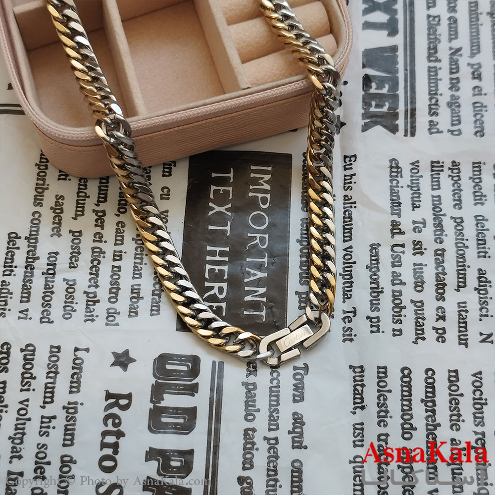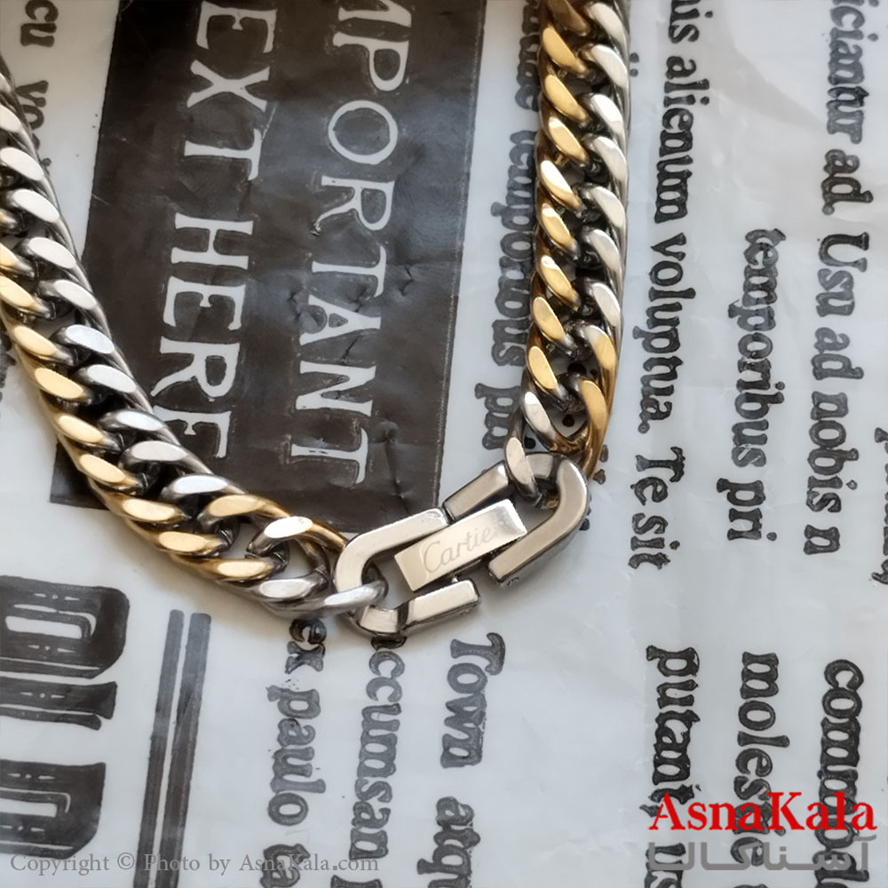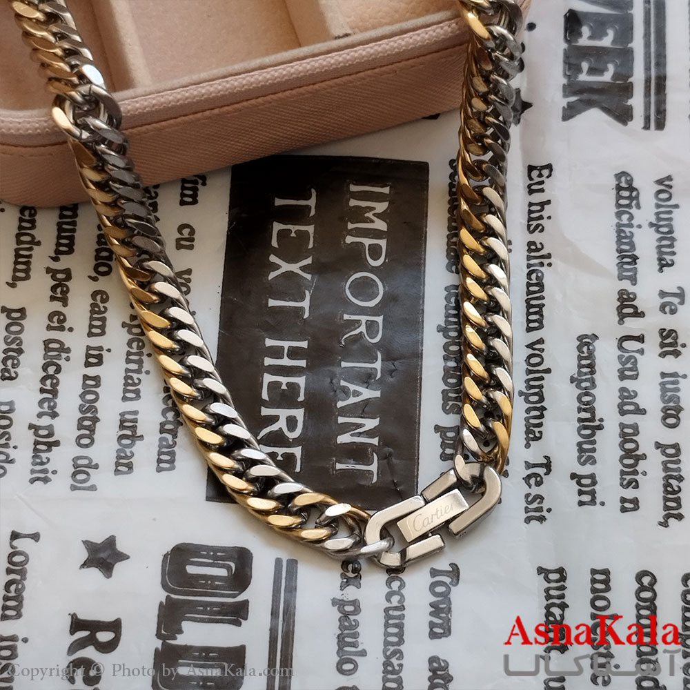 زنجیر کارتیر طلایی نقره ای استیل 60 سانتی متر 8 میل با قفل رولکسی کد GNB162230W