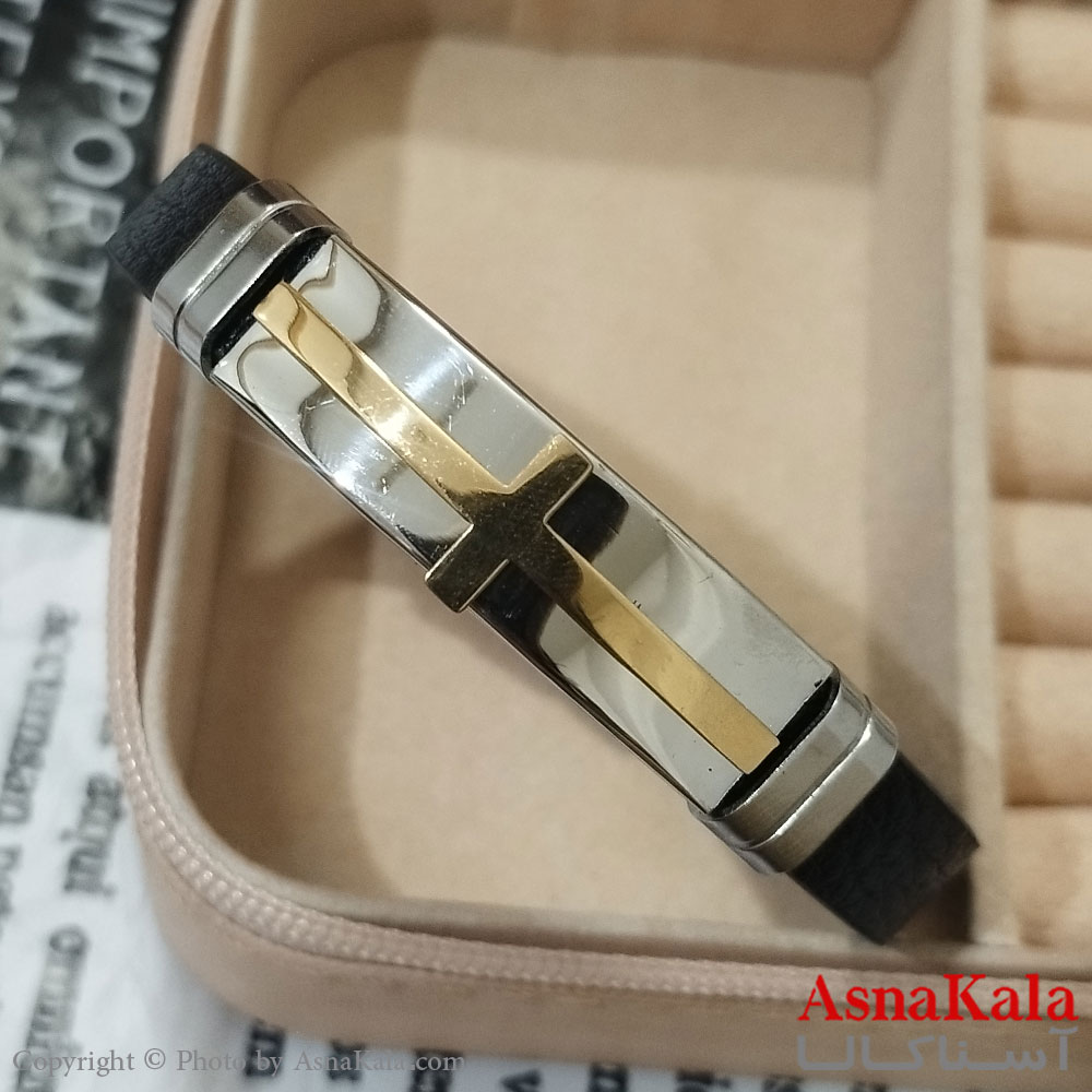 دستبند چرم مردانه مدل دو صلیب خاص کد DSB181673W