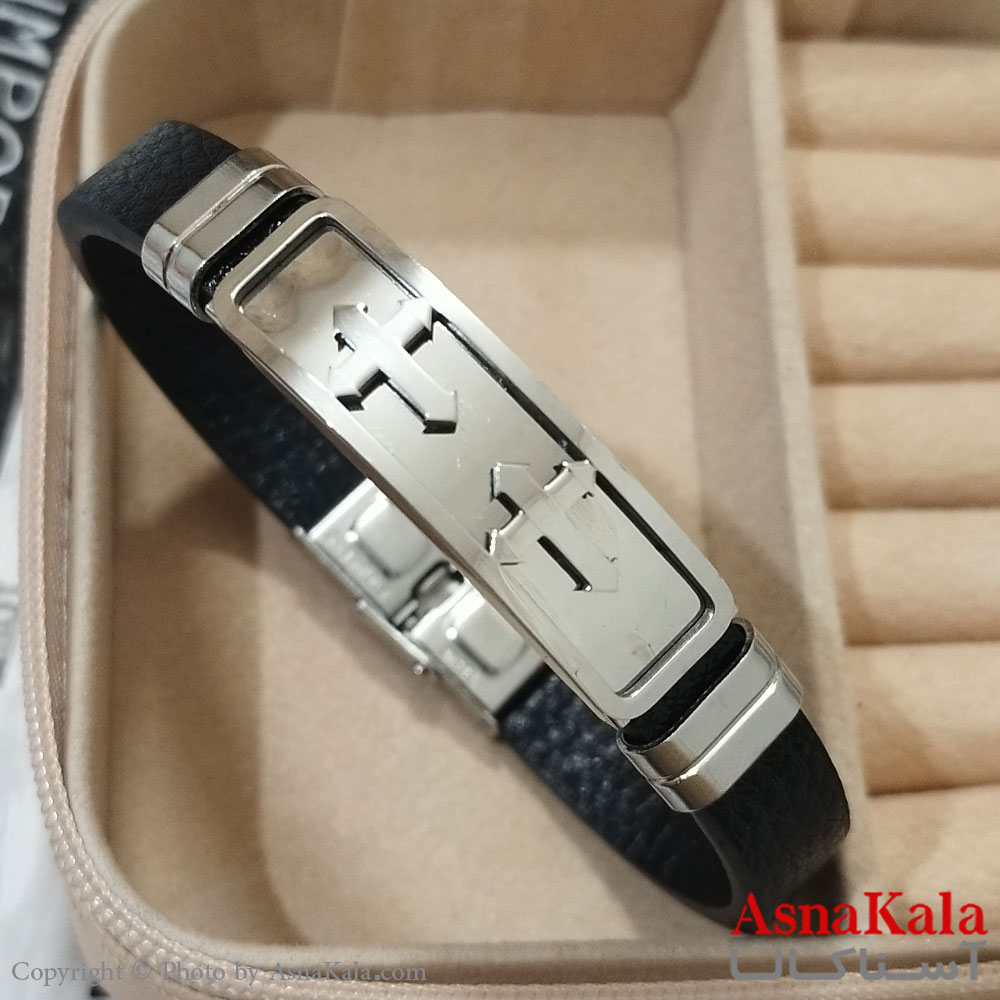 دستبند چرم مردانه مدل دو صلیب کد DSB181681W