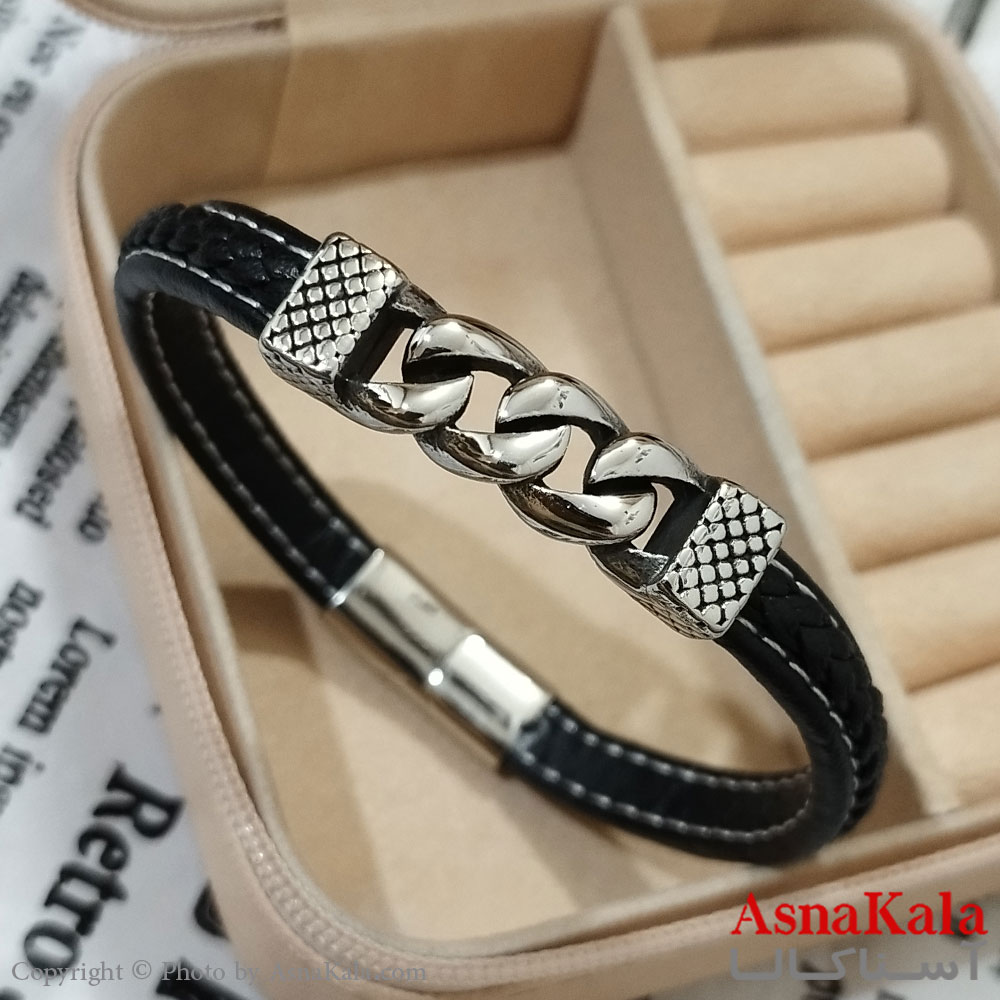 بنگل چرم محصول چین است ، که از جنس استیل طراحی شده است.در بسته بندی هدیه توسط اسنا کالا بفروش می رسد.