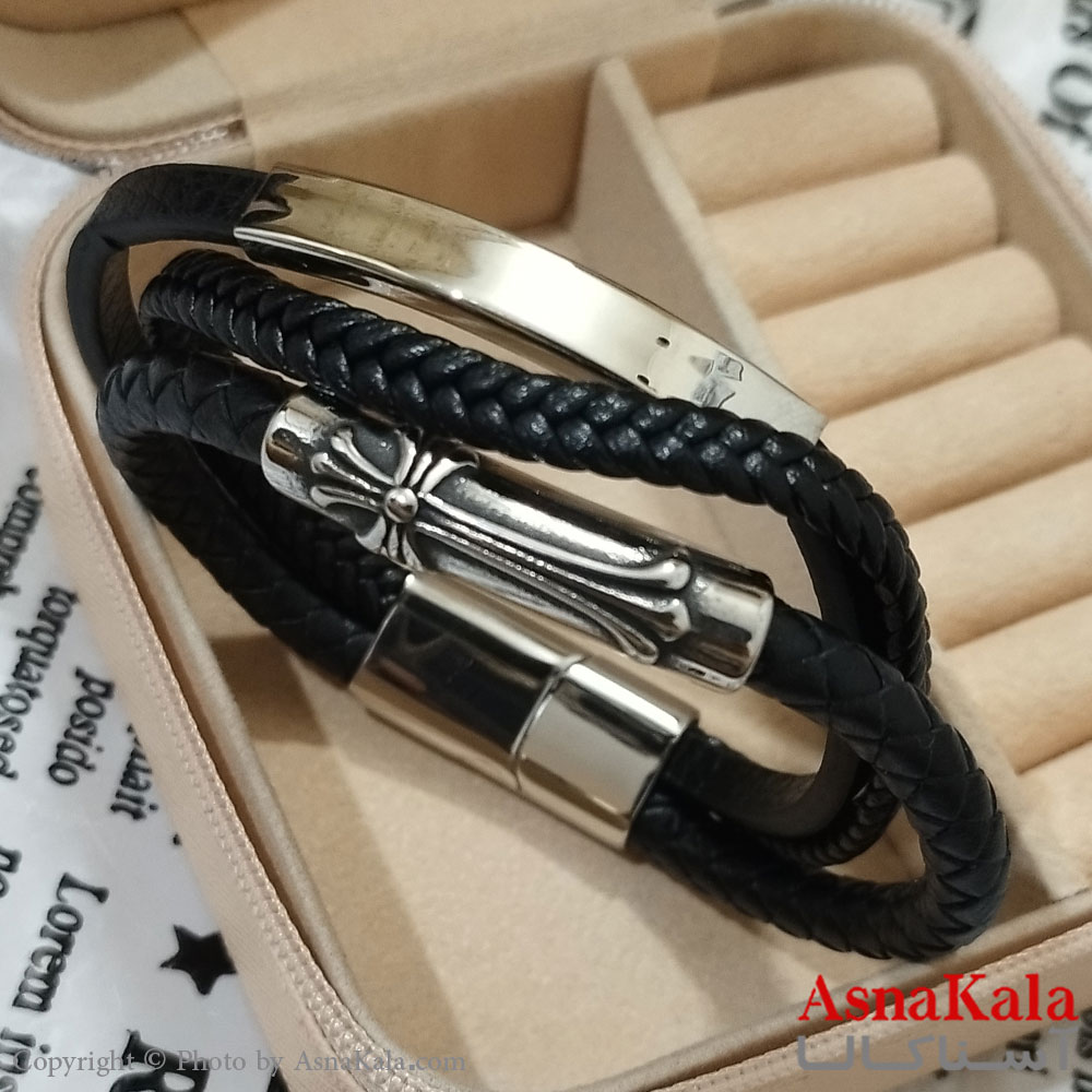 دستبند سه لاین چرم مردانه مدل صلیب کد DSB181732W