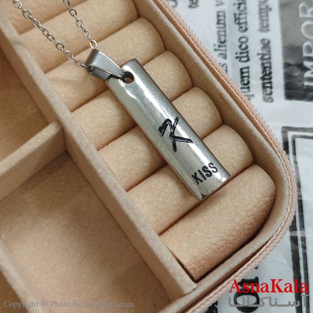 آویز گردنبند مردانه بوسه رنگ نقره ای کد GNB162291W