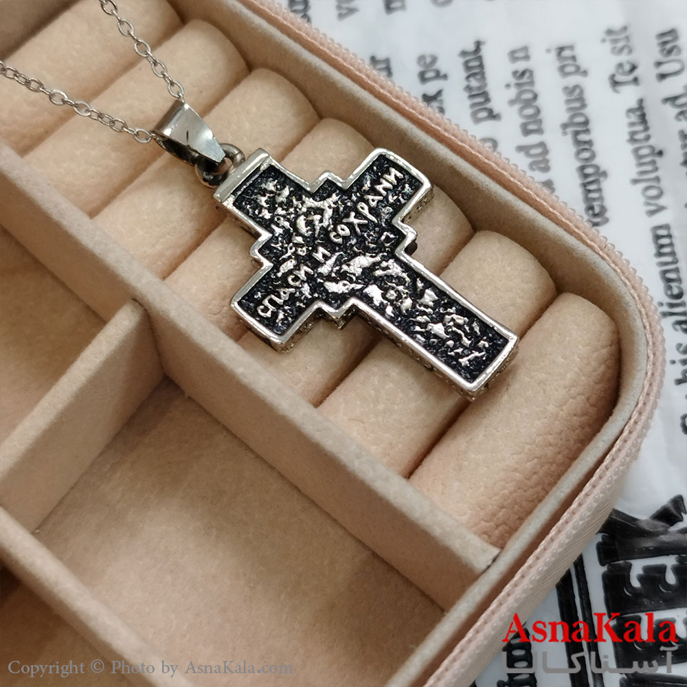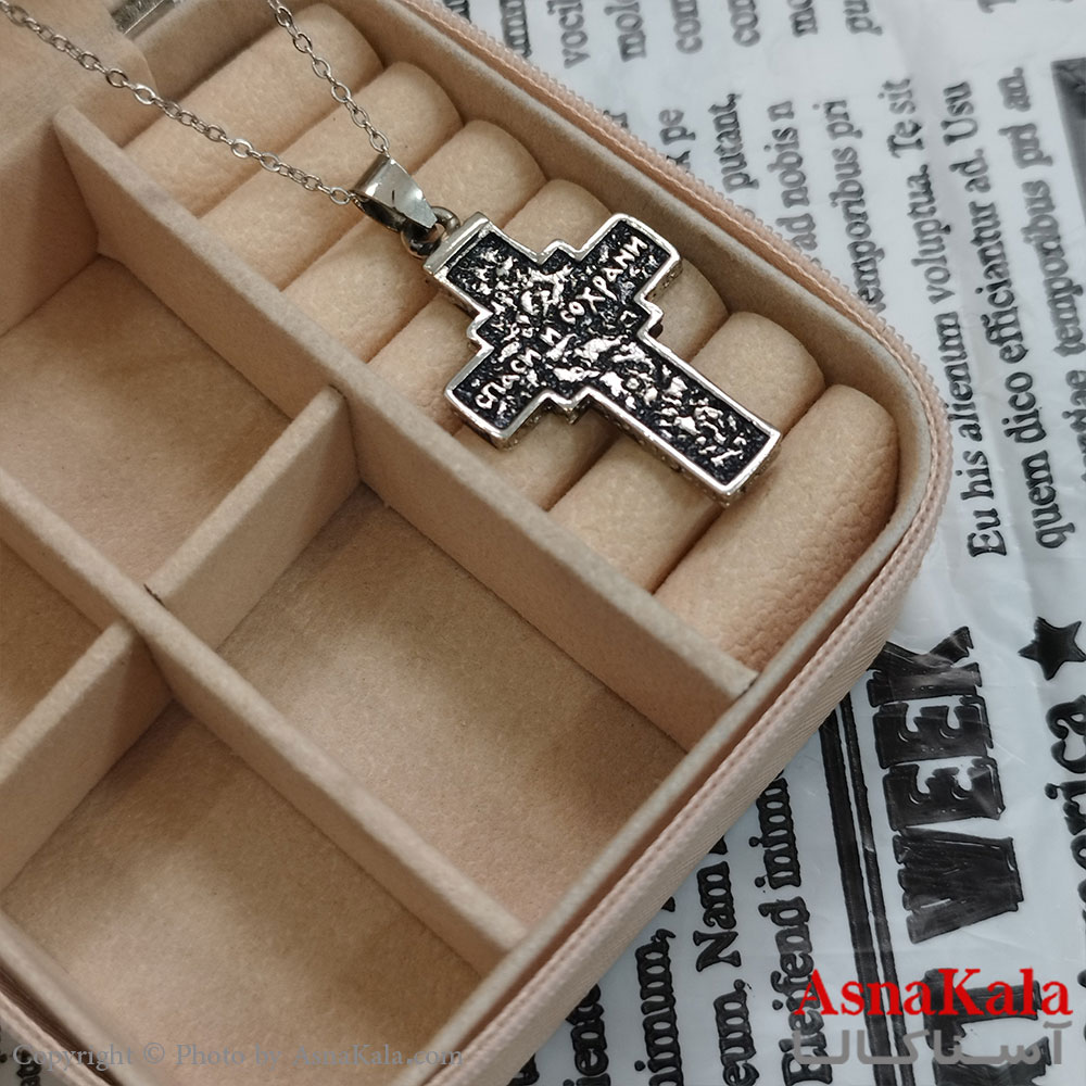 آویز گردنبند مردانه صلیب رنگ نقره ای کد GNB162286W
