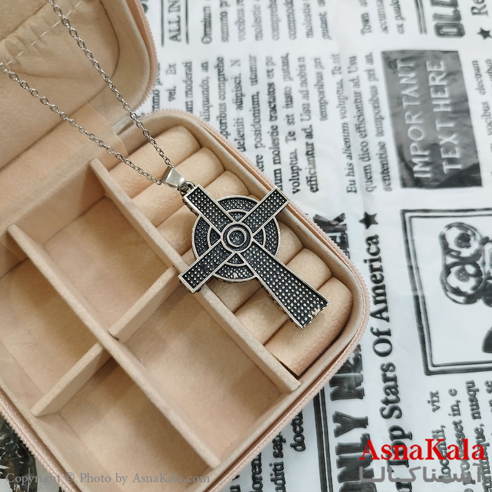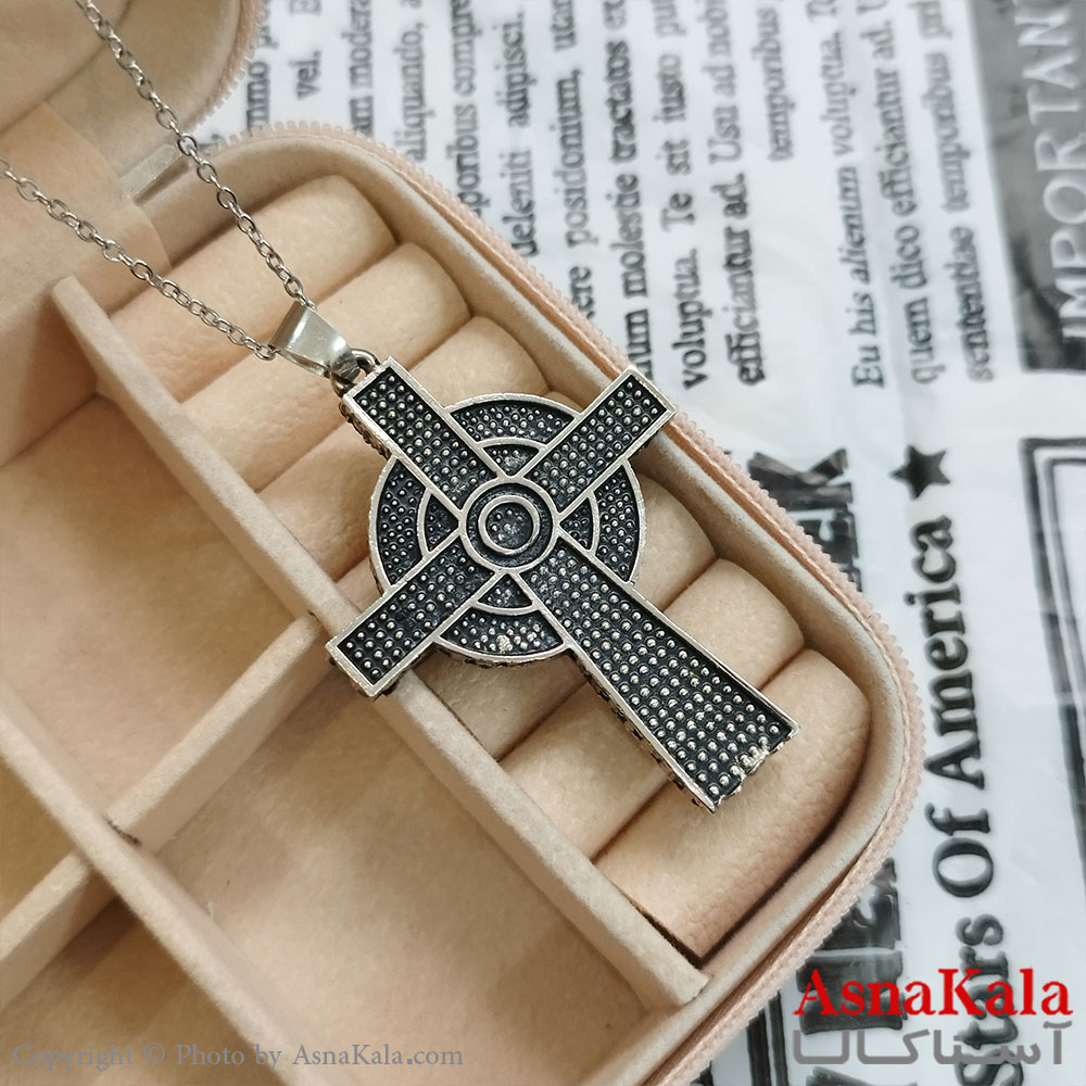 آویز گردنبند مردانه صلیب رنگ نقره ای کد GNB162287W