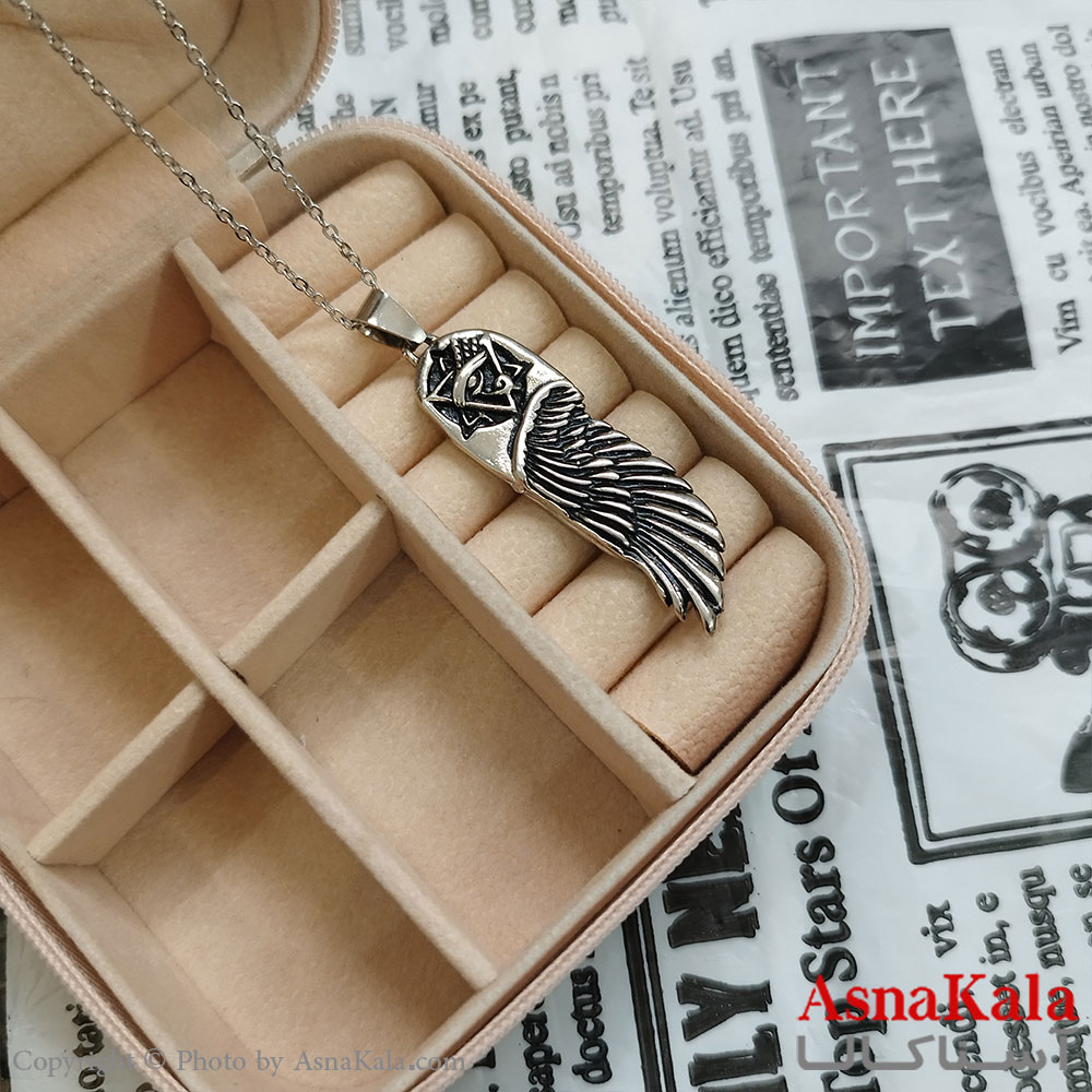 آویز گردنبند مردانه بال رنگ نقره ای کد GNB162293W