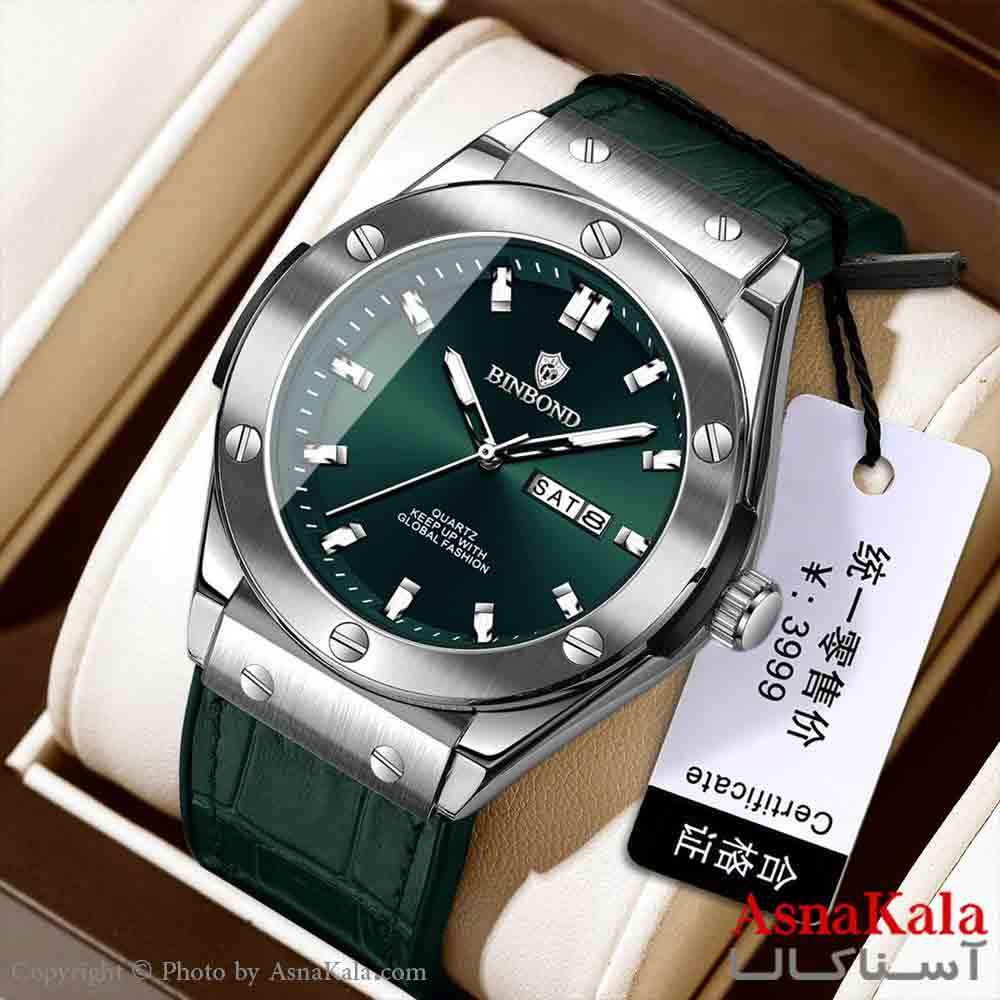 ساعت مردانه بین باند از جنس بدنه فلزی است، که در بسته بندی هدیه توسط آسناکالا به فروش می رسد.