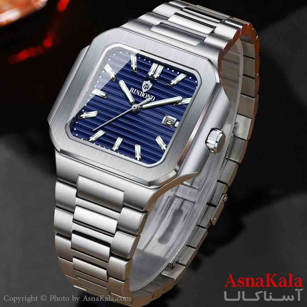 ساعت مردانه بین باند از جنس بدنه فلزی است، که در بسته بندی هدیه توسط آسناکالا به فروش می رسد.