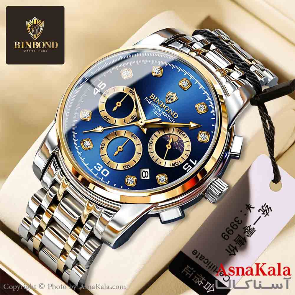 ساعت مردانه بین باند از جنس بدنه فلزی است، که در بسته بندی هدیه توسط آسناکالا به فروش می رسد.