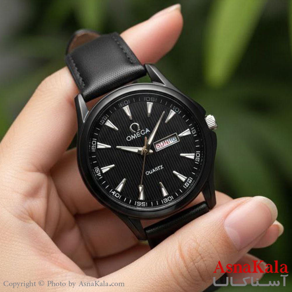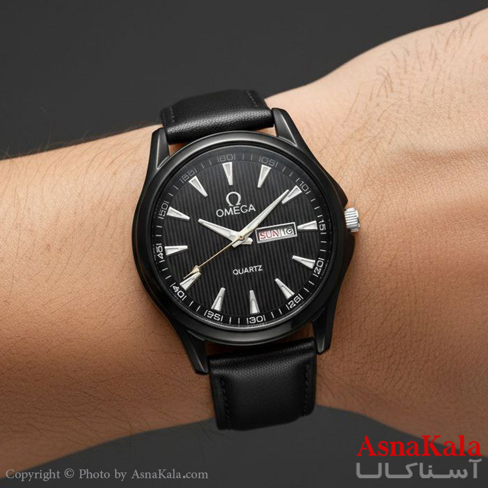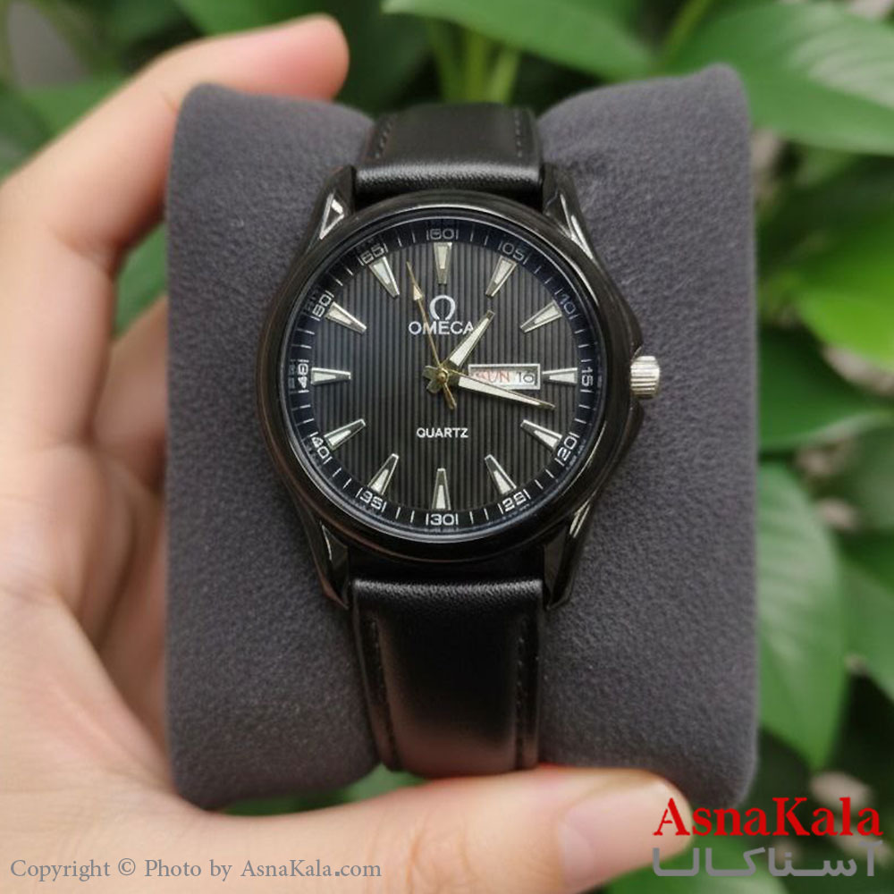 ساعت مردانه امگا چرم مشکی کلاسیک دارای روزشمار کد WTCH11417W
