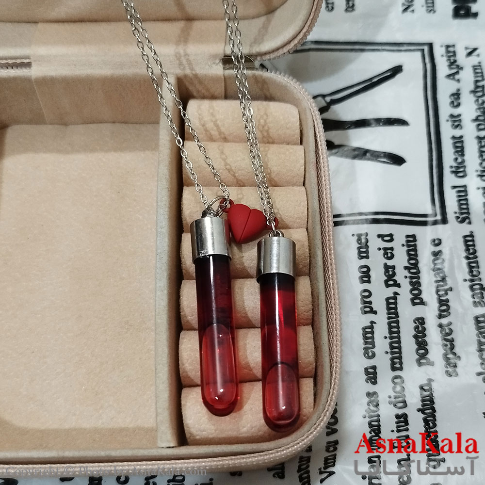 گردنبند ست دونفره استیل مدل شیشه خون نقره ای کد GNB162580W