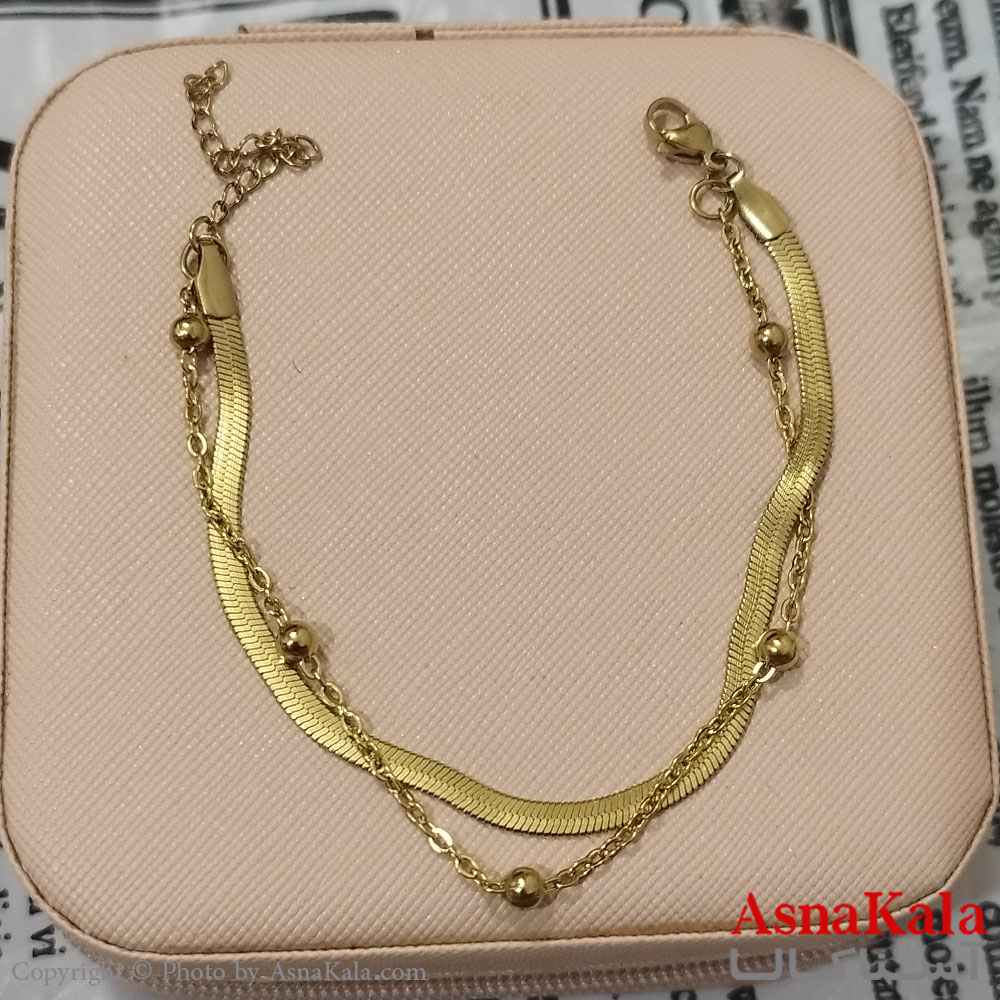دستبند زنانه زنجیری دولاین ماری و توپی رنگ طلایی کد DSB181698W
