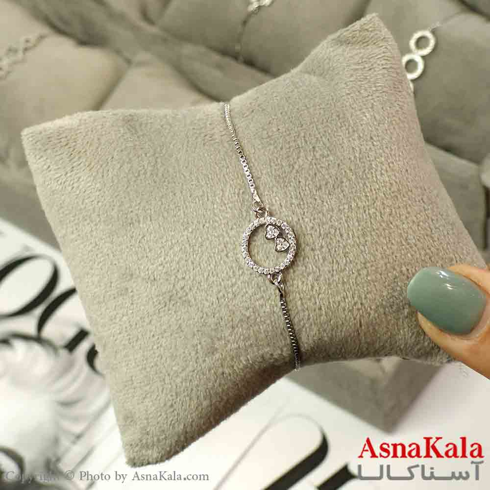دستبند آسانسوری استیل نقره ای طرح قلب و دایره کد DSB181497W