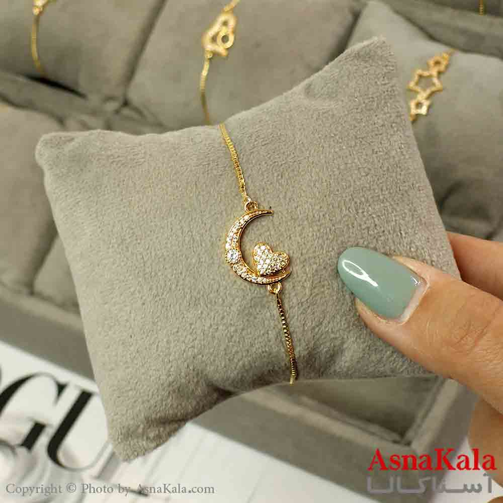 دستبند آسانسوری استیل طلایی طرح قلب و ماه کد DSB181498W