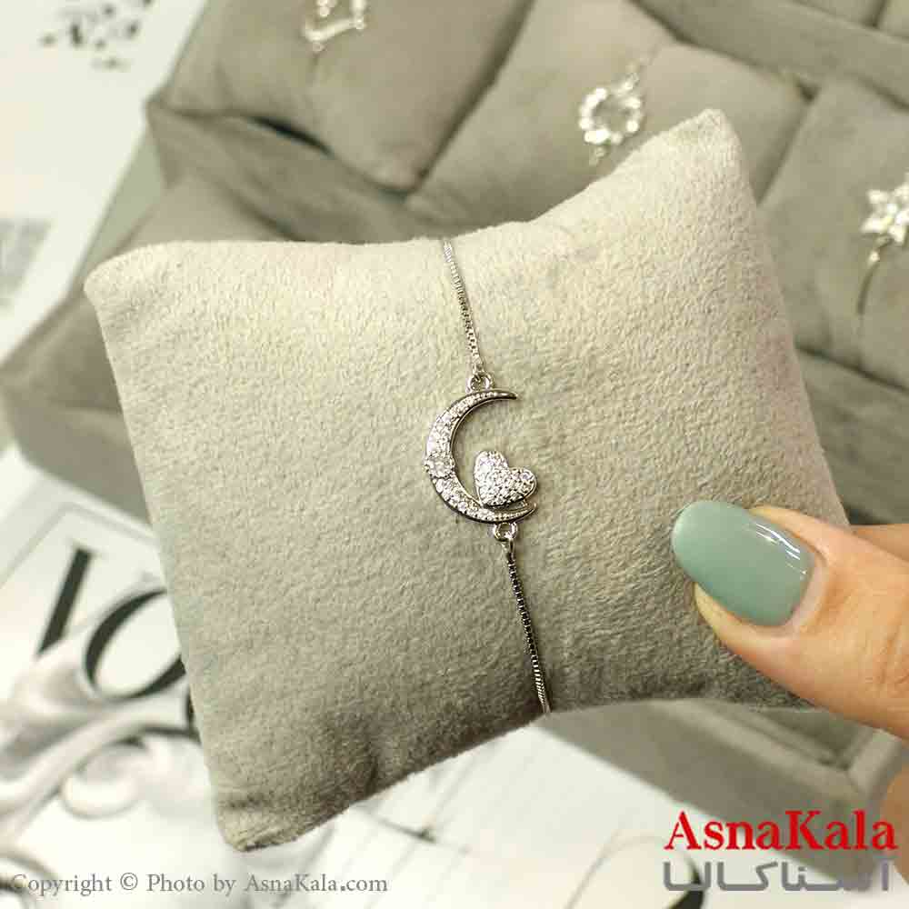دستبند آسانسوری استیل نقره ای طرح ماه و قلب کد DSB181485W