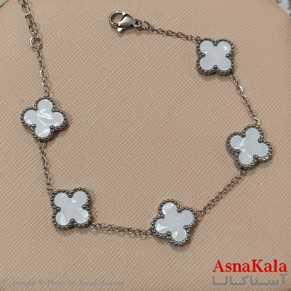 دستبند زنانه زنجیری ونکلیف رنگ نقره ای کد DSB181696W