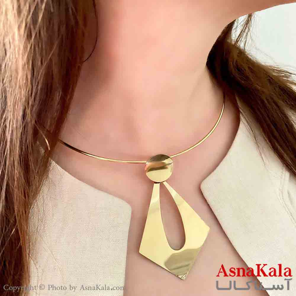 گردنبند طوق دخترانه پینترستی استیل مدل دوطرح اشکی رنگ طلایی کد GNB161811W