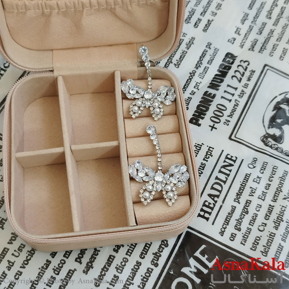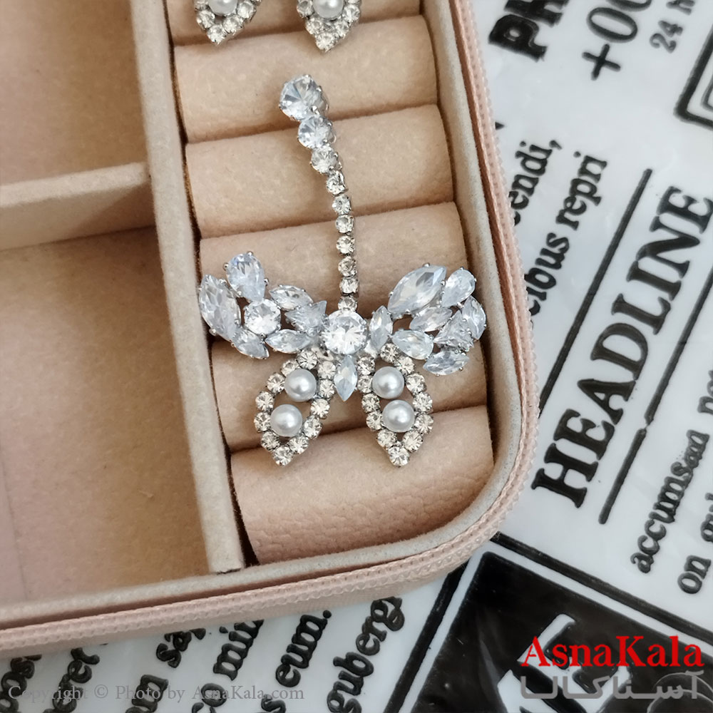 گوشواره پروانه جواهری مدل آویز نگیندار رنگ نقره ای کد GSH152070W