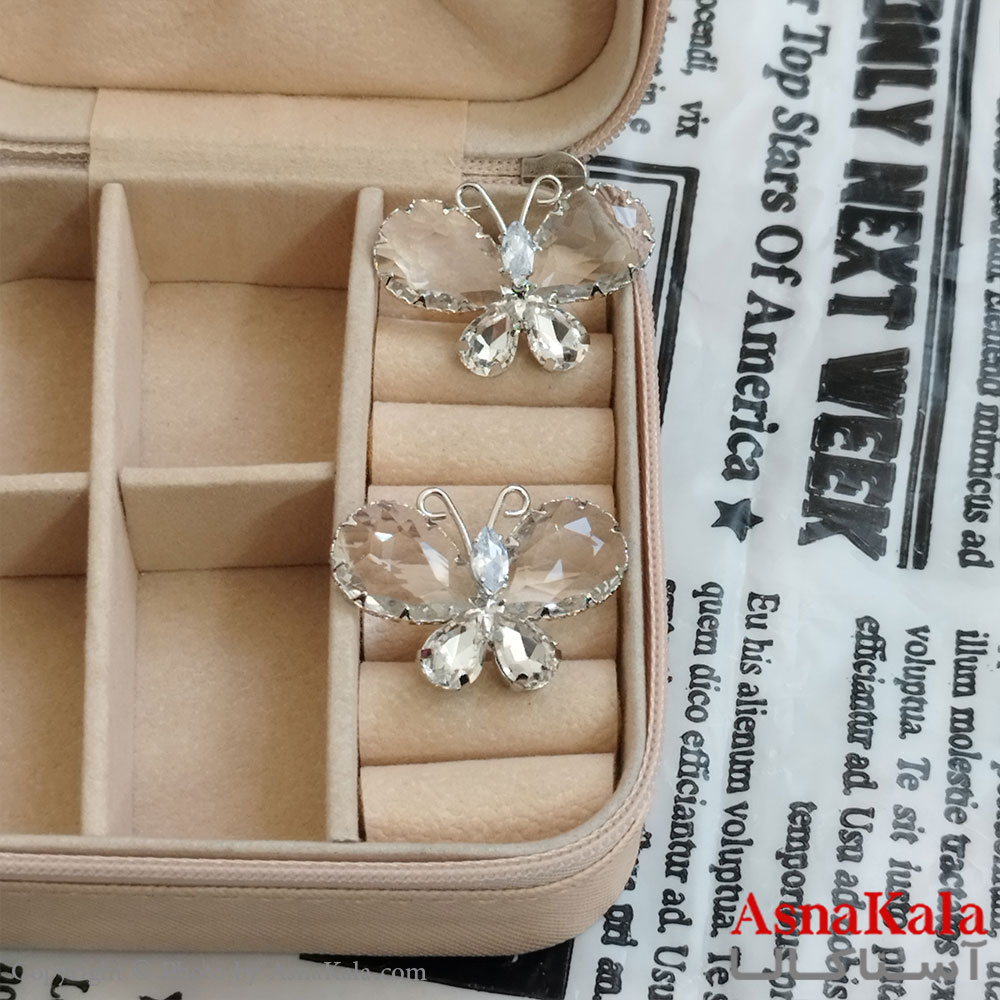 گوشواره پروانه جواهری مدل آویز نگیندار رنگ نقره ای کد GSH152108W