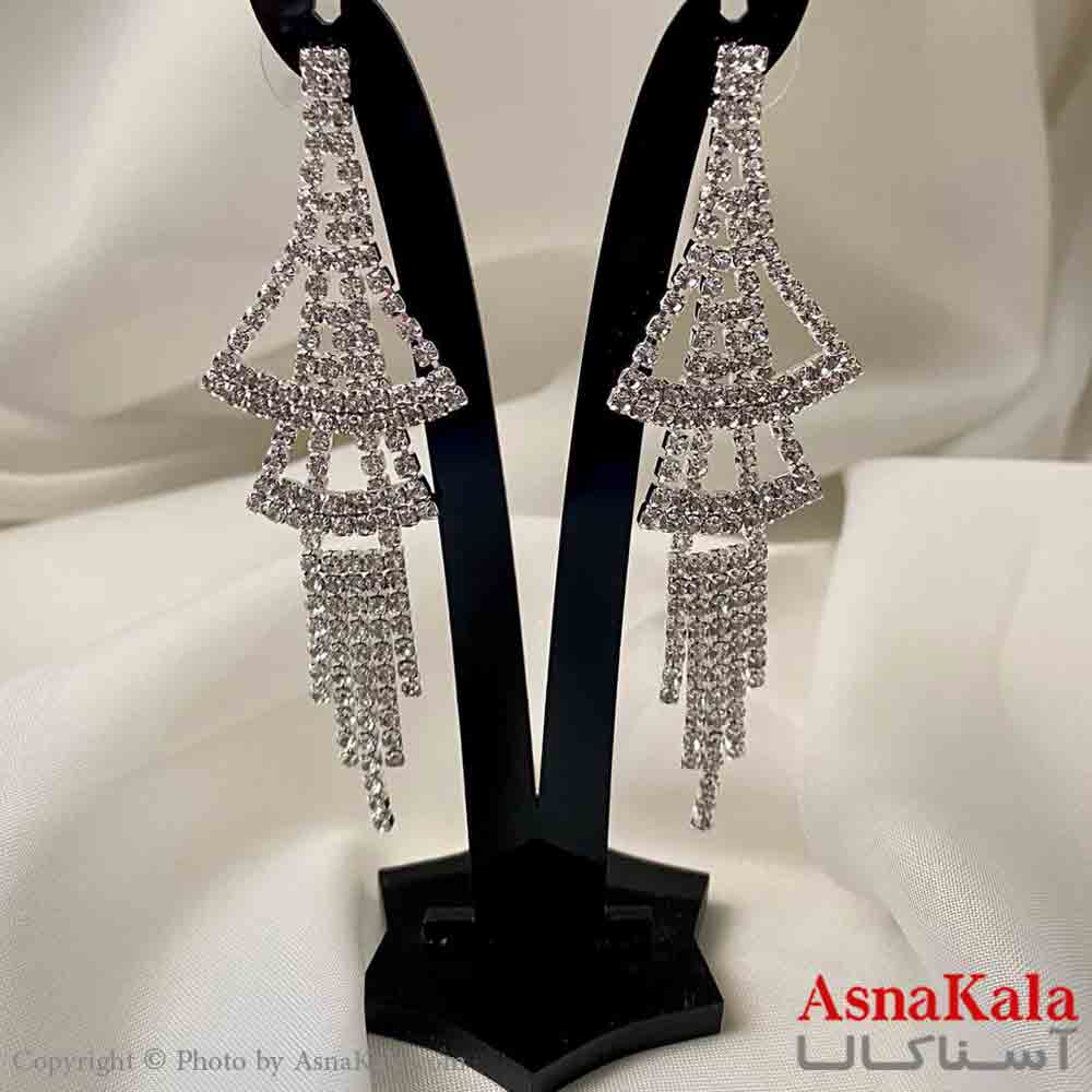 گوشواره دخترانه مدل آویز جواهری مدل دو نیم دایره رنگ نقره ای کد GSH151941W
