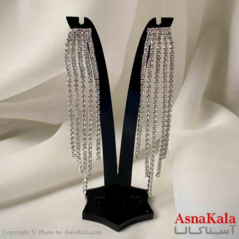گوشواره استیل شیک دخترانه مدل آویز جواهری مدل پنج ریسه ای رنگ نقره ای کد GSH151961W