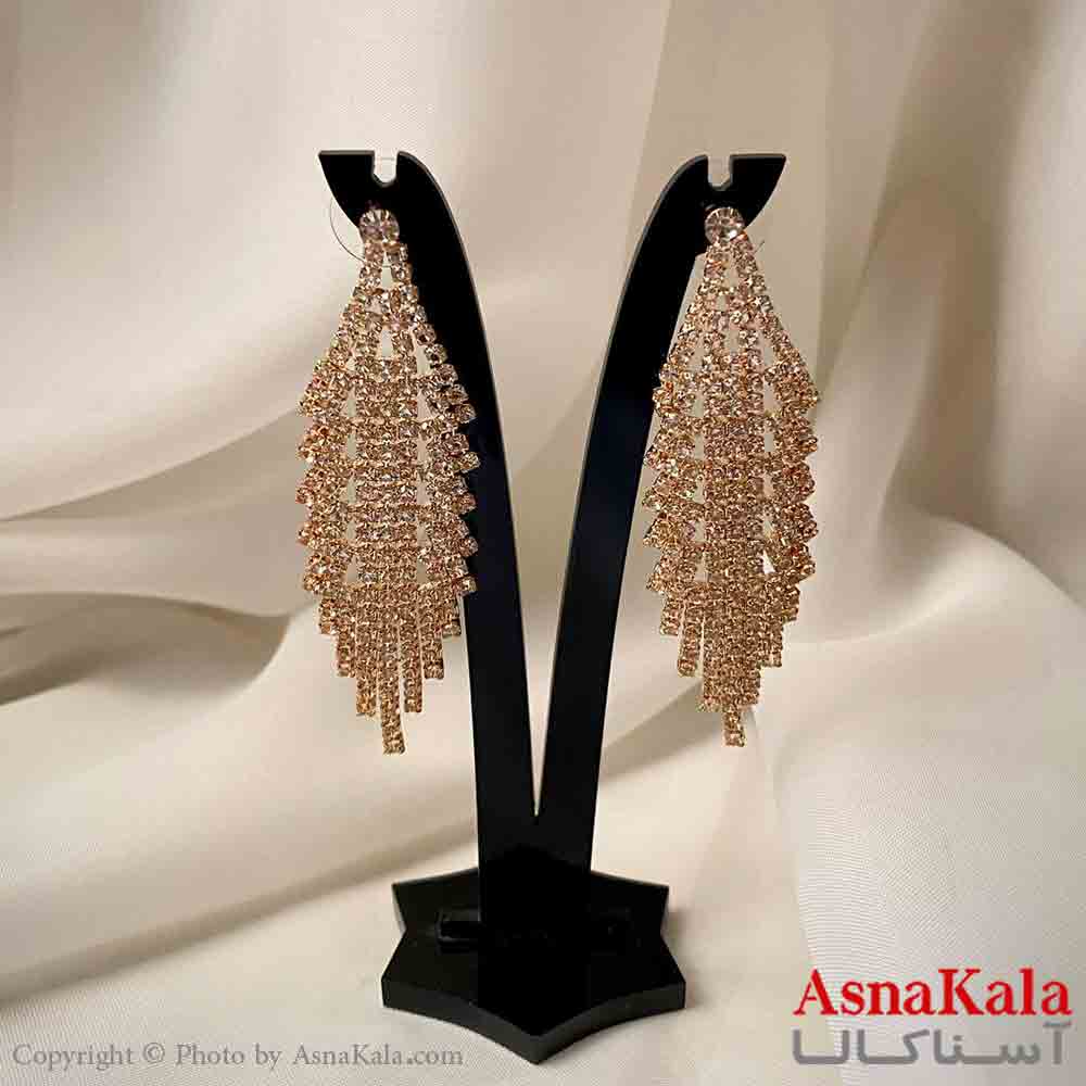گوشواره دخترانه مدل آویز جواهری مدل لوزی مدرن رنگ طلایی کد GSH151963W