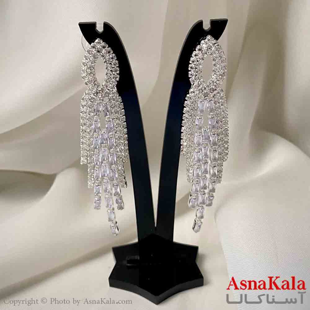 گوشواره دخترانه مدل آویز جواهری مدل اشک ریسه ای رنگ نقره ای کد GSH151964W
