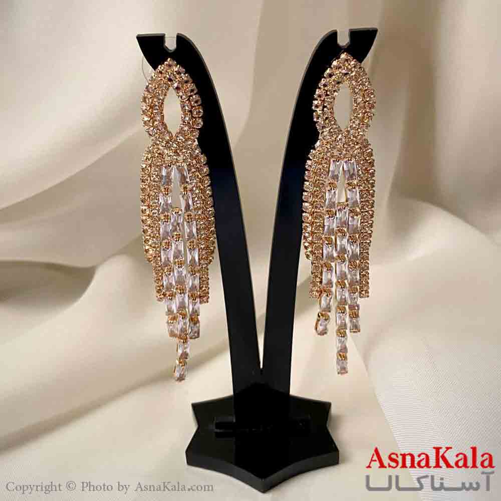گوشواره دخترانه مدل آویز جواهری مدل اشک ریسه ای رنگ طلایی کد GSH151965W