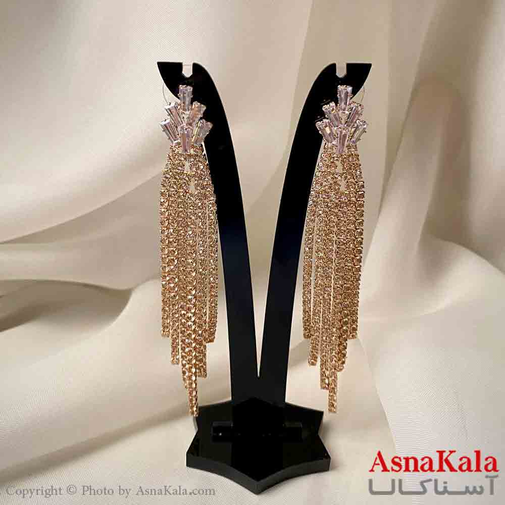 گوشواره دخترانه مدل آویز جواهری مدل گندمی ریسه ای رنگ طلایی کد GSH151969W