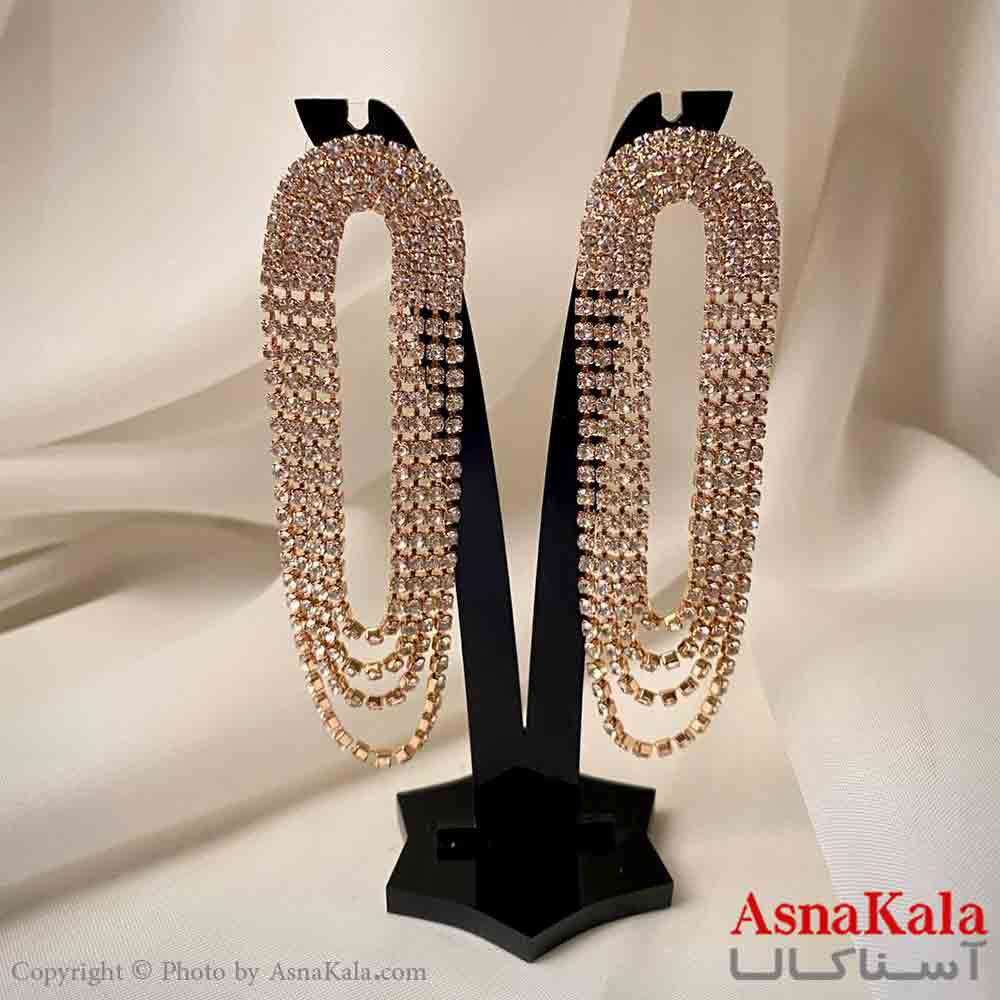 گوشواره استیل شیک دخترانه مدل آویز جواهری مدل بیضی رنگ طلایی کد GSH151971W