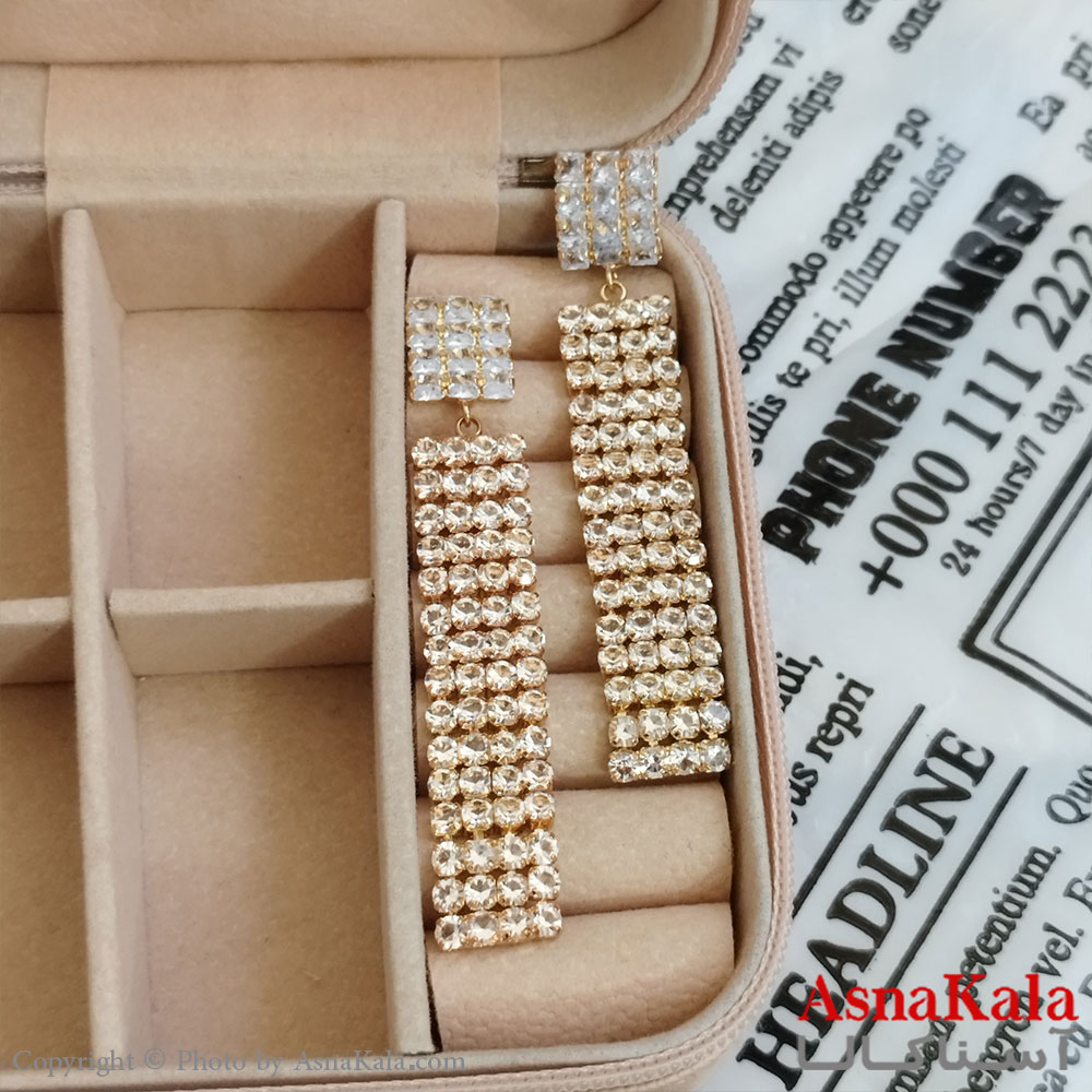 گوشواره جواهری مدل آویز نگیندار رنگ طلایی کد GSH152073W