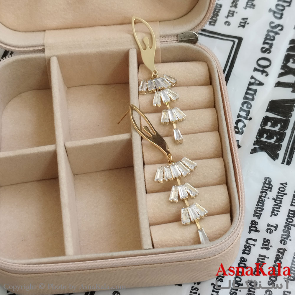 گوشواره جواهری مدل آویز نگیندار رنگ طلایی کد GSH152119W