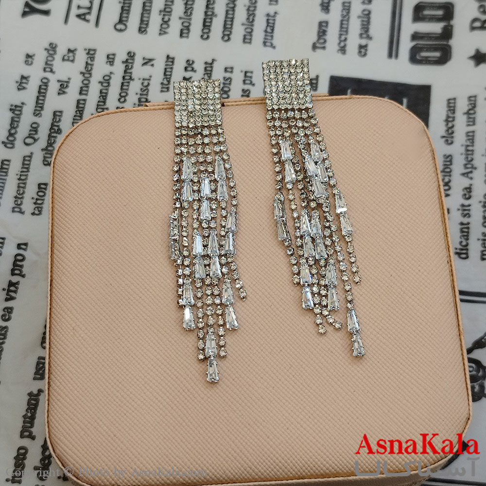 گوشواره جواهری مدل آویز نگیندار رنگ نقره ای کد GSH152123W