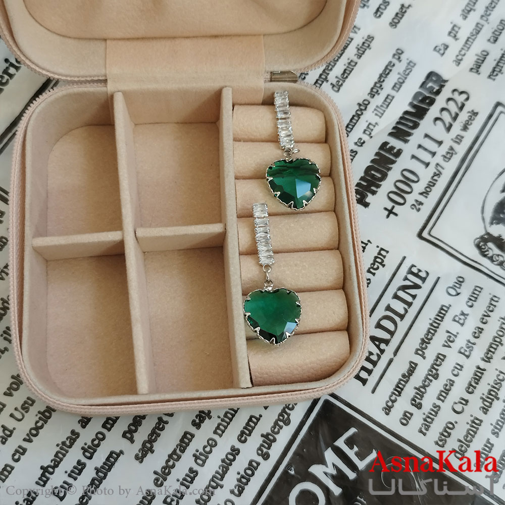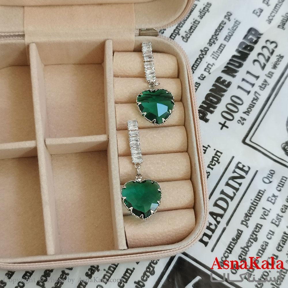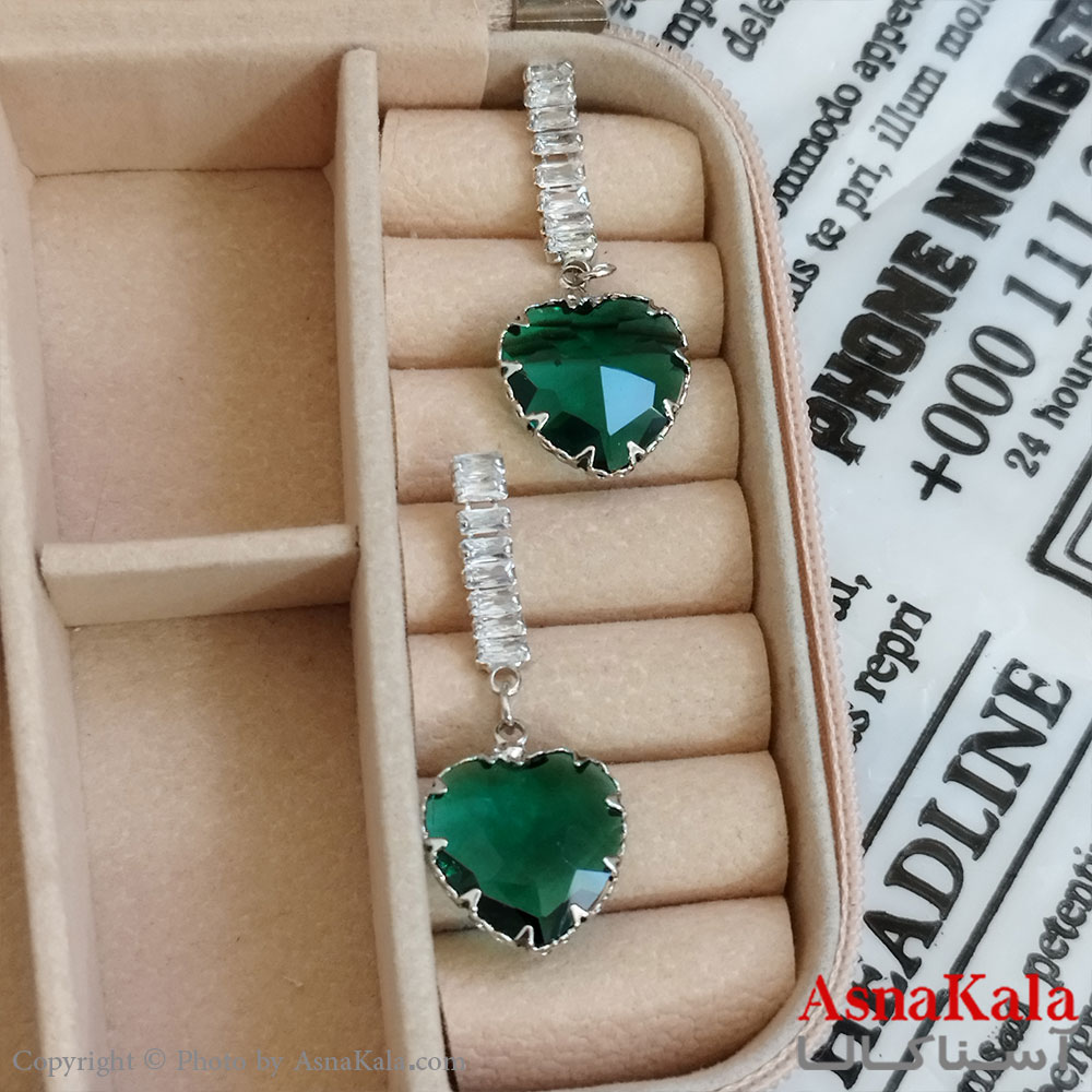 گوشواره قلب جواهری مدل آویز نگیندار رنگ نقره ای کد GSH152071W