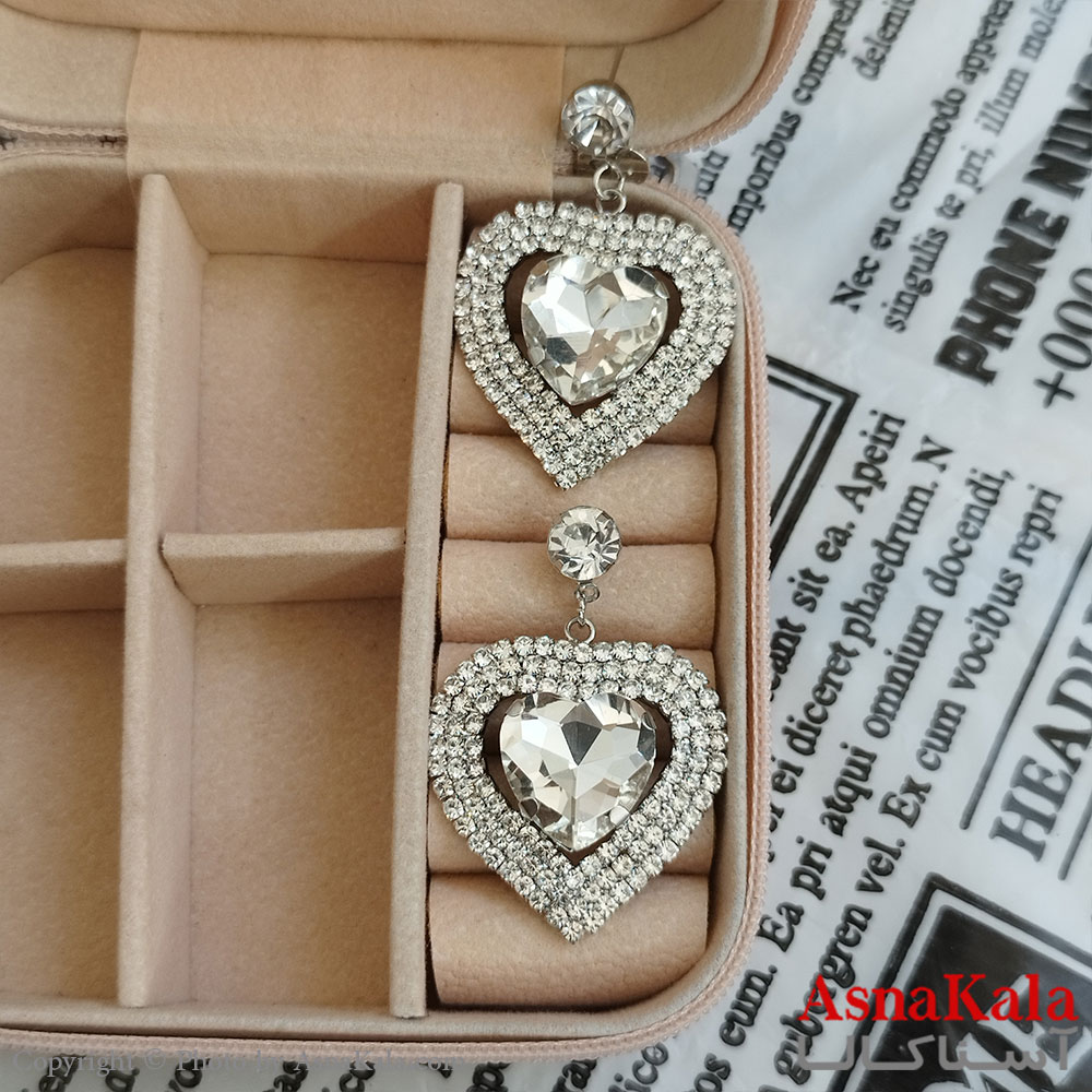 گوشواره قلب جواهری مدل آویز نگیندار رنگ نقره ای کد GSH152090W