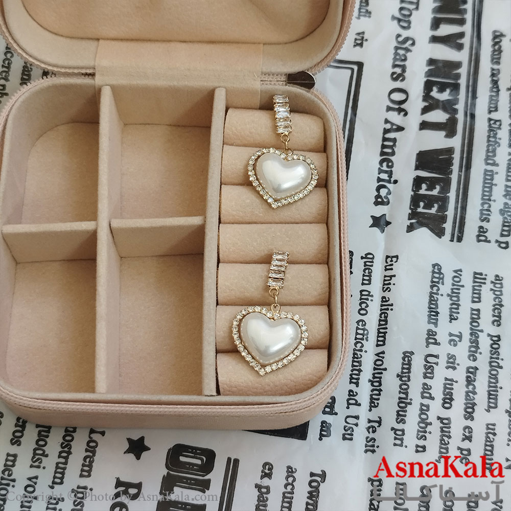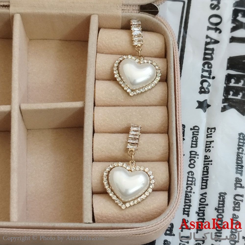 گوشواره قلب جواهری مدل آویز نگیندار رنگ طلایی کد GSH152102W