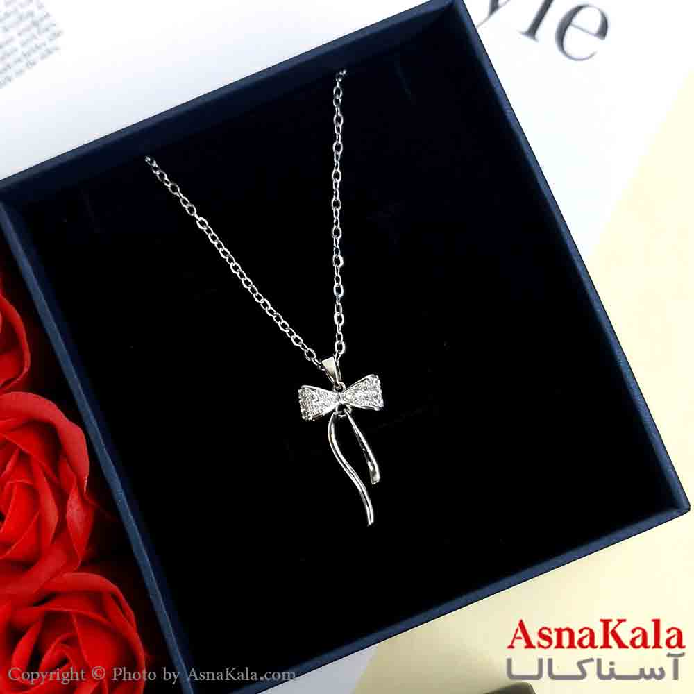 گردنبند جواهری پاپیون نقره ای دخترانه استیل با طول 45 سانتی متر کد GNB161915W