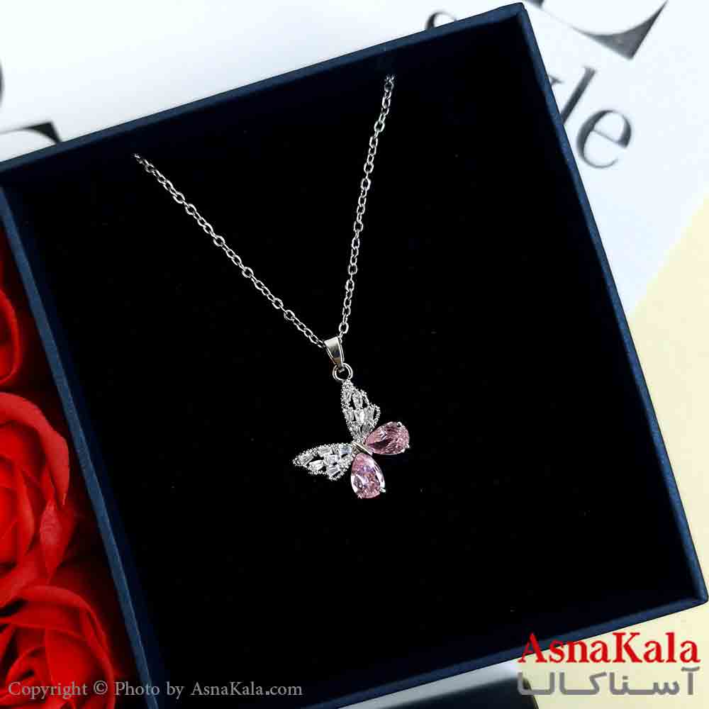 گردنبند پروانه نقره ای دخترانه استیل با طول 45 سانتی متر کد GNB161964W