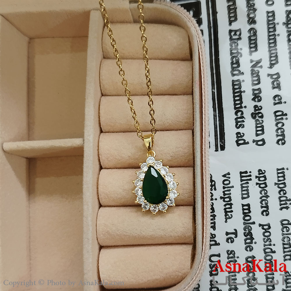 گردنبند استیل زنانه اشک نگیندار نگین سبز کد GNB162404W