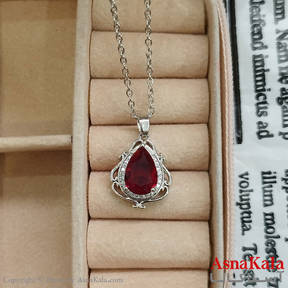 گردنبند استیل زنانه اشک نگیندار نگین قرمز کد GNB162410W