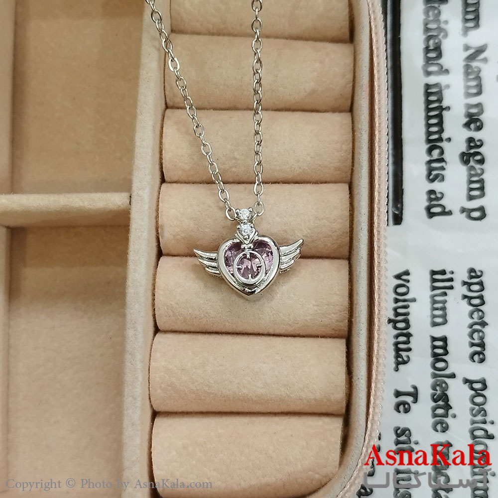 گردنبند استیل زنانه قلب بالدار نگین صورتی کد GNB162413W