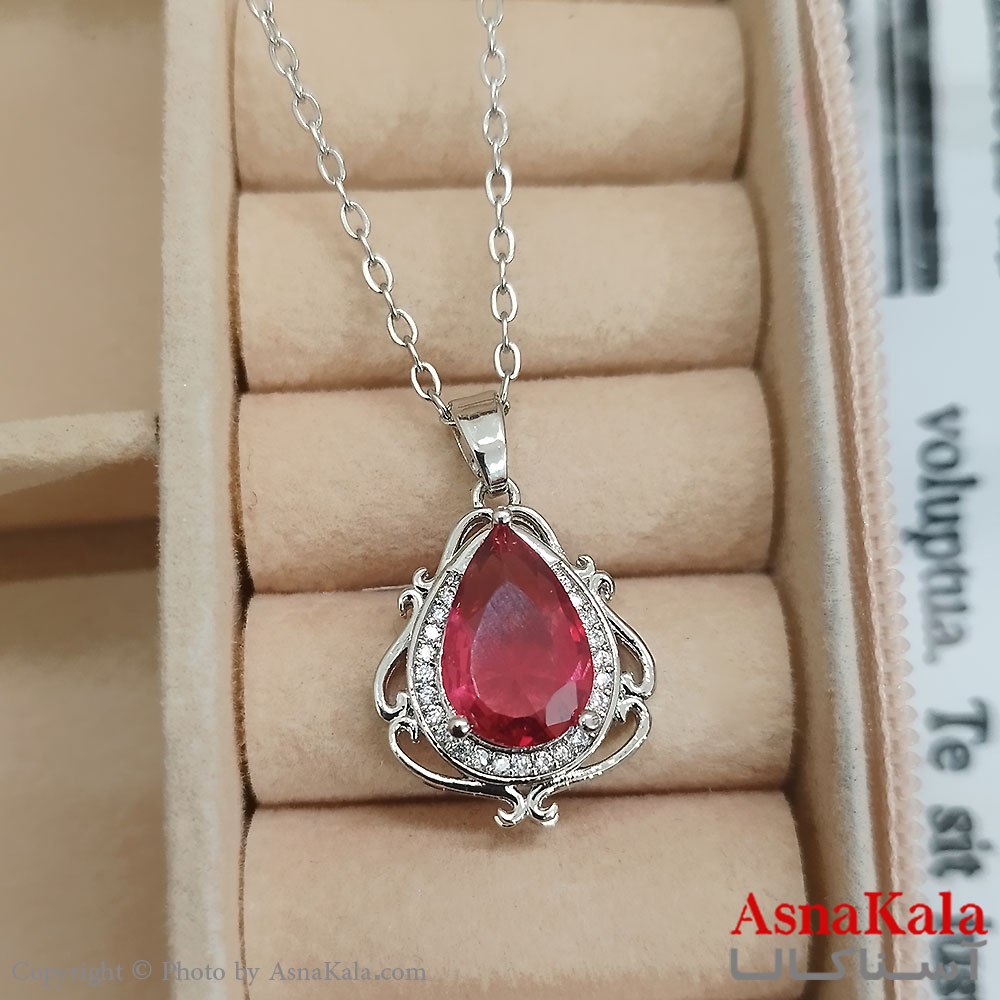 گردنبند استیل اشک مدرن جواهری نگین قرمز کد GNB162440W