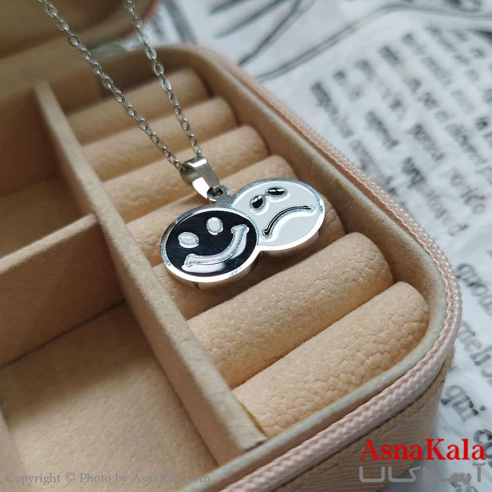 گردنبند شادی و غم دخترانه استیل با زنجیر 45 سانتی متر کد GNB162073W