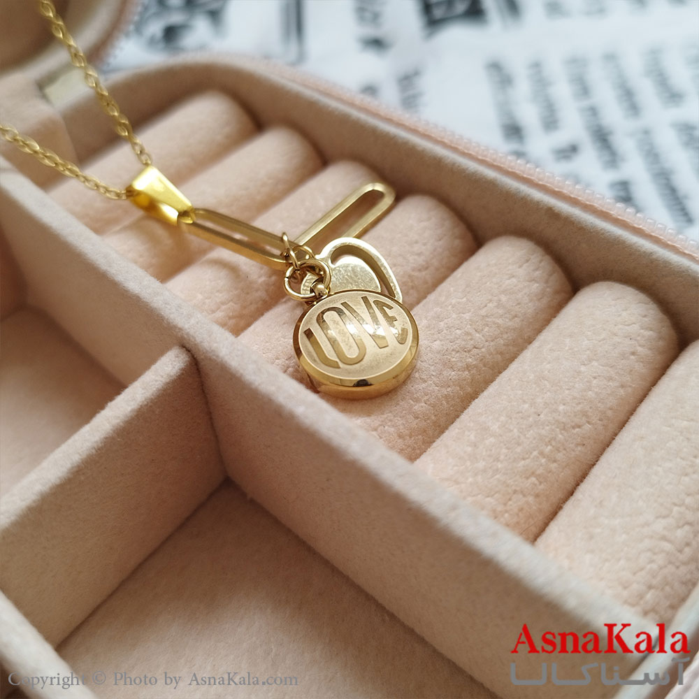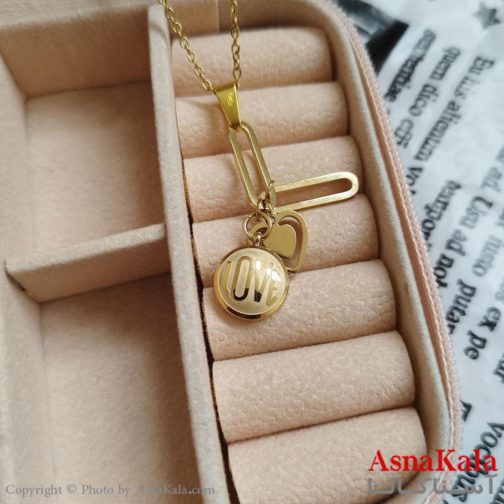 گردنبند عشق طلایی دخترانه استیل با زنجیر 45 سانتی متر کد GNB162129W